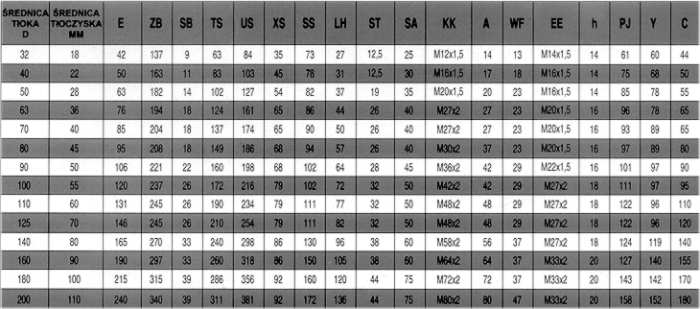 Uszczelnienia i inne elementy typu łożyska są wykazane w Karcie Gwarancyjnej poszczególnych typów cylindrów.