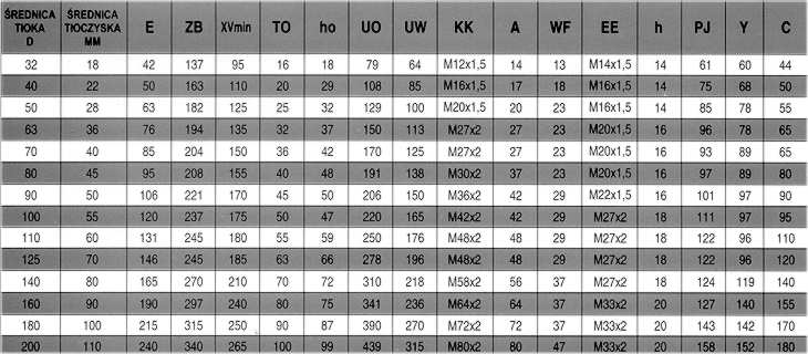 Uszczelnienia i inne elementy typu łożyska są wykazane w Karcie Gwarancyjnej poszczególnych typów cylindrów.