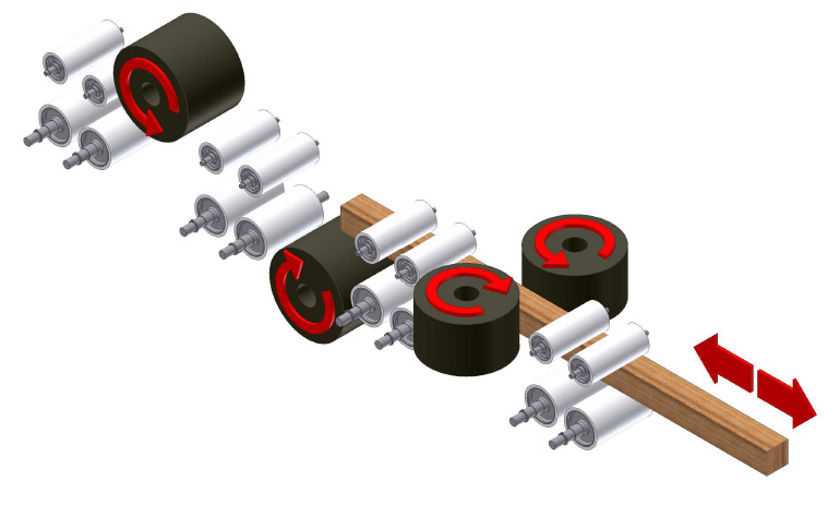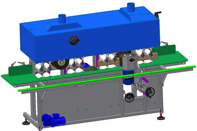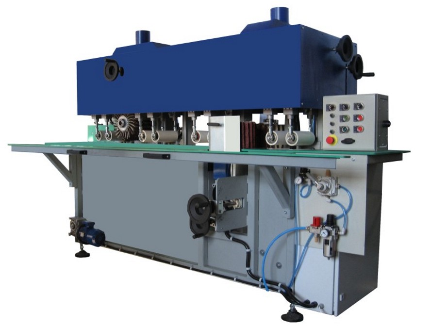 Szczotkarko - szlifierka przeznaczona jest do czterostronnego przelotowego szlifowania oraz odpylania elementów drewnianych np. po frezowaniu kształtowym lub po lakierowaniu. Wyposażona jest w głowice robocze firmy TRANSACTOR o konstrukcji umożliwiającej szybką wymianę pojedynczych segmentów szlifująco-polerujących.