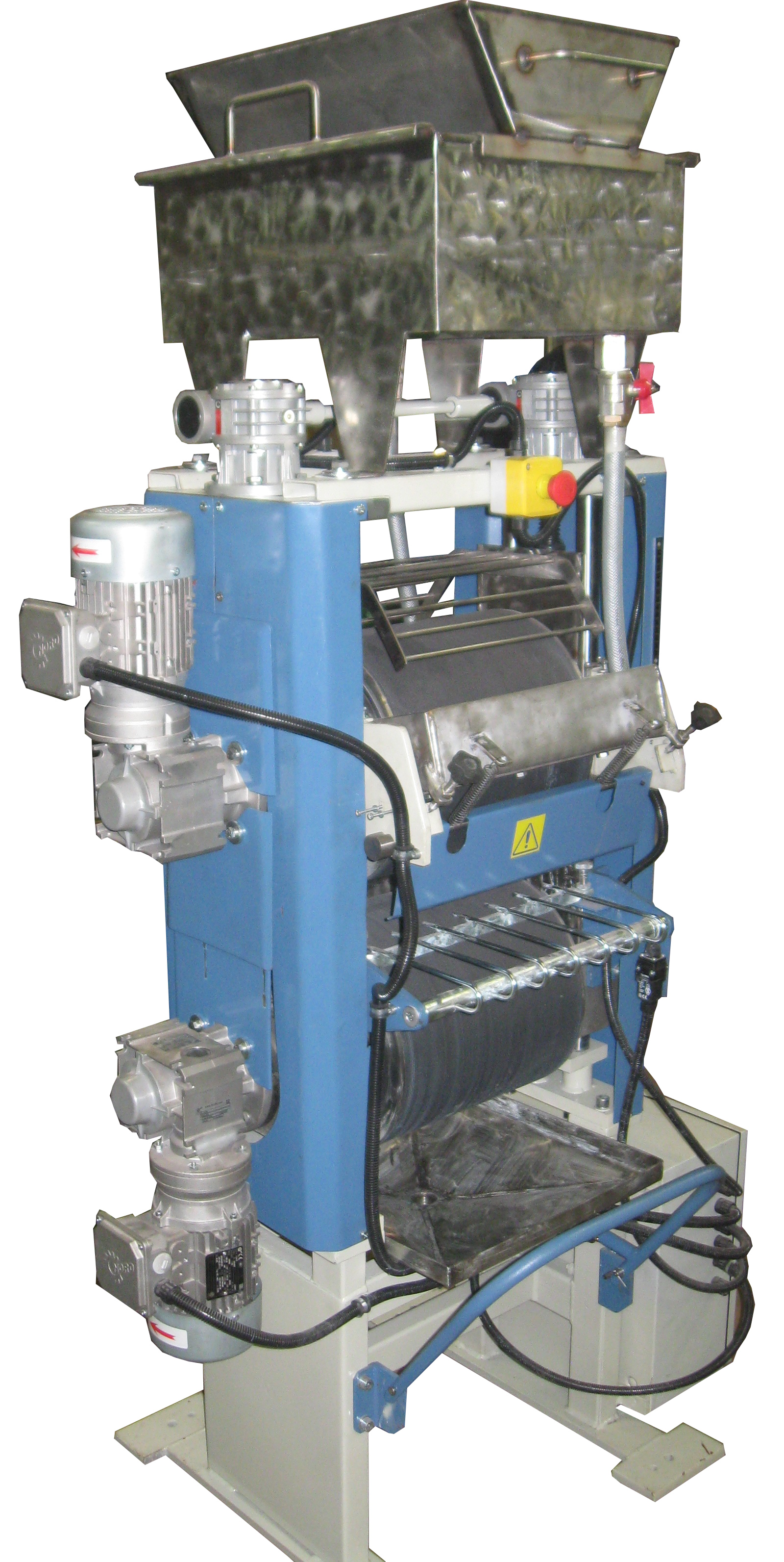 Устройство предназначено для двухстороннего покрытия элементов и столярных плит, и плоских элементов во время оклеивания/облицовки. Существенная единица устройства это набор с валиками с резиновым покрытием. Каждый валик распространяет клей отдельно. На поверхностях цилиндрических резиновых покрытий валиков нарезанные желобки в форме спирали, с ходом и глубиной в зависимости от надлежащего использования. Цапфы валков установлены на подшипниках с обеих сторон в колебательных шариковых подшипниках, встроенных в раздвижных корпусах подшипников. На каждом валу помещается лоток, играя роль резервуара для клея. Щель подачи клея регулируется с помощью винтов с рукояткой в форме звезды. Размер пропускной способности зазора между валками настраивается с помощью подъемного механизма. Привод валков осуществляется при помощи отдельных редукторных двигательей на каждом валу.