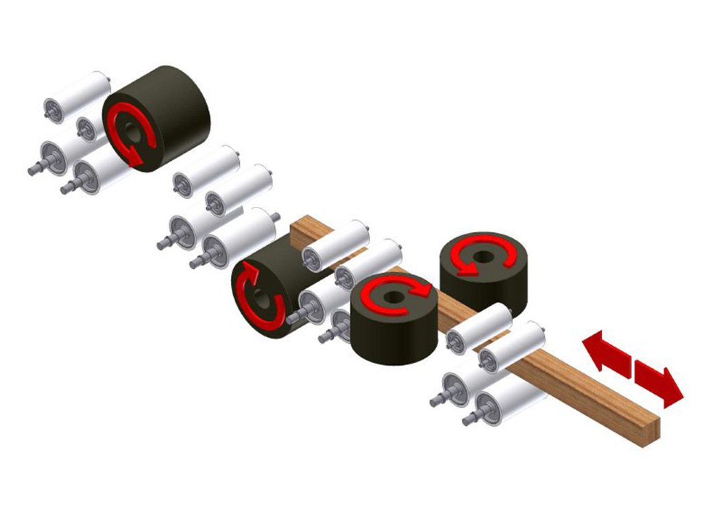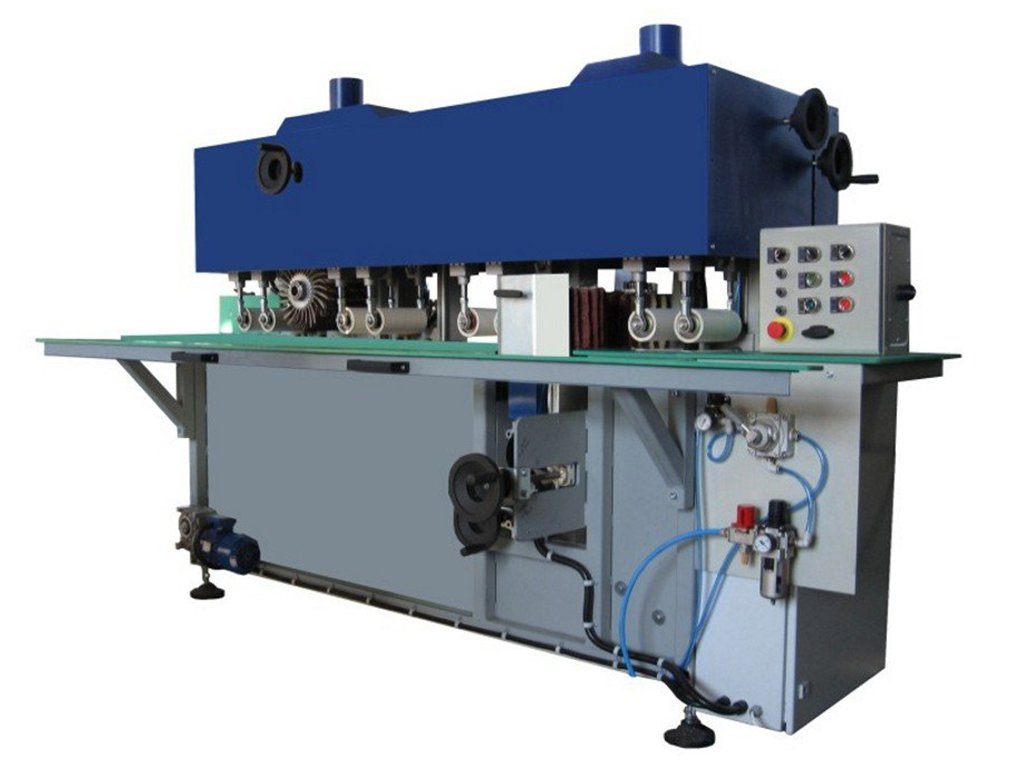 Щеточно-шлифовальный станок предназначен для четырехстороннего сквозного шлифования и удаления пыли с деревянных элементов, например, после фасонного фрезерования или после нанесения лака.